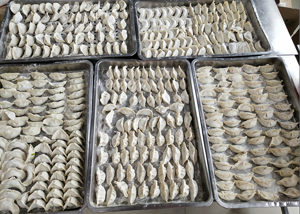 大家齊心協(xié)力,用心包出的餃子如一排排元寶華麗亮相。每一個餃子都代表對員工的一份關愛,一份祝福。
