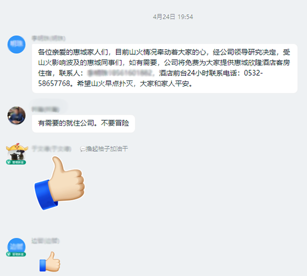 面對(duì)山火風(fēng)險(xiǎn),公司高效的應(yīng)急聯(lián)動(dòng)和貼心的人文關(guān)懷,讓全體員工感受到惠城大家庭的溫暖。未來,公司將繼續(xù)秉承“員工幸?!钡墓芾砟繕?biāo),用實(shí)際行動(dòng)關(guān)愛員工、理解員工,以人文關(guān)懷提升員工的幸福感和凝聚力,促進(jìn)員工健康成長(zhǎng)和企業(yè)持續(xù)發(fā)展。