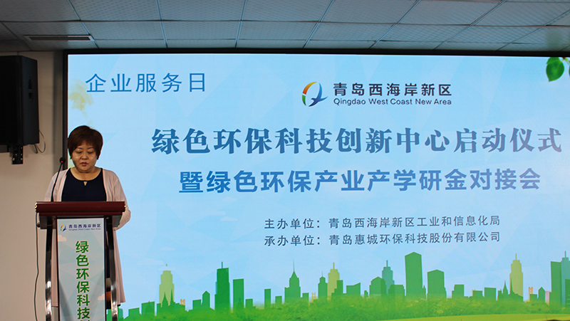 青島西海岸新區(qū)工信局副局長(zhǎng)張青宣讀《關(guān)于青島西海岸新區(qū)綠色環(huán)??萍紕?chuàng)新中心的批復(fù)》