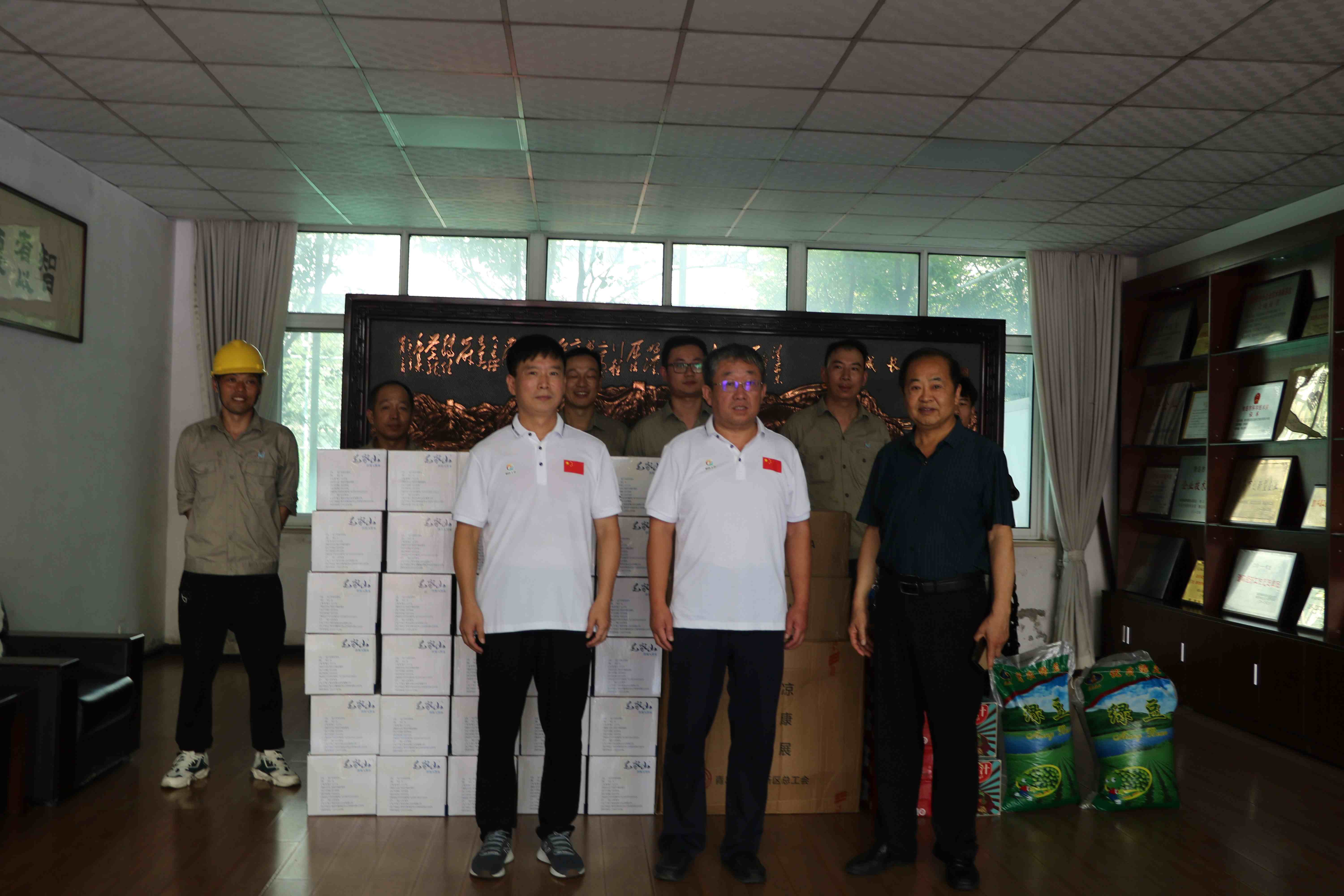 ???? 8月3日,西海岸新區(qū)總工會朱主席、黃島街道工會黃主席一行蒞臨我公司淮河路廠區(qū),開展“送清涼”活動,慰問一線職工,保障一線職工健康權(quán)益。公司工會主席程兆溪、副主席李明珠陪同,看望了淮河路廠區(qū)高溫作業(yè)下的一線員工,為他們送去礦泉水、飲料、毛巾、綠豆等消暑慰問品,將工會關(guān)懷送到基層。