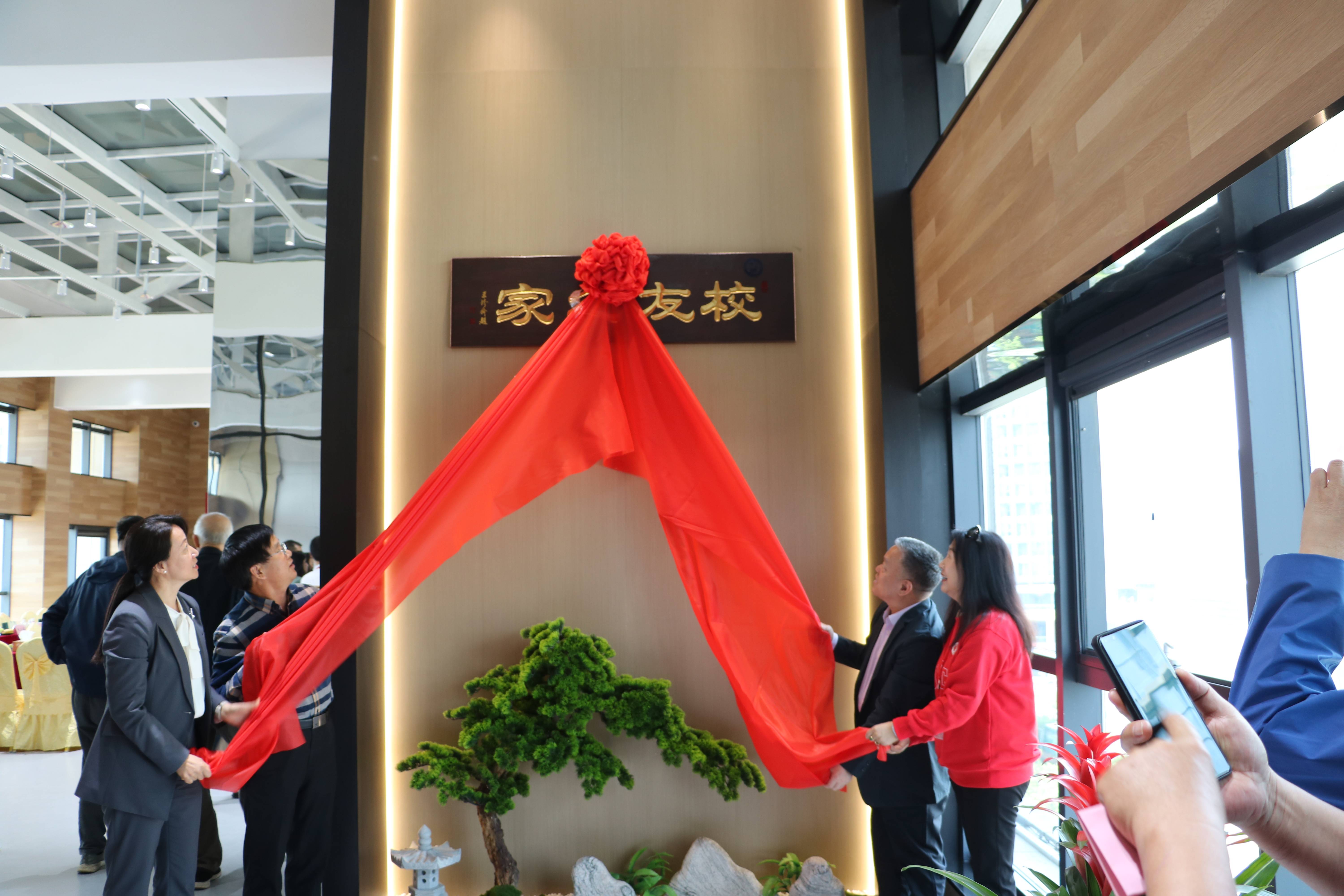 交流會(huì)后,校友總會(huì)會(huì)長(zhǎng)查明、校長(zhǎng)助理兼校友總會(huì)秘書(shū)長(zhǎng)王效美、惠城環(huán)保創(chuàng)始人張新功、青島校友會(huì)副會(huì)長(zhǎng)兼秘書(shū)長(zhǎng)唐作慧一道為“校友之家”揭牌。