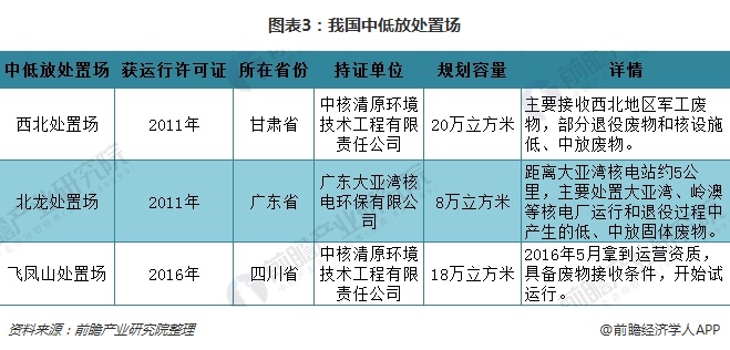 另外,以每年每臺核電機組產(chǎn)生60立方米固體廢物包計算,預計2020年我國每年將產(chǎn)生多達3480立方米的固體廢物。然而,我國目前僅有中低放核廢料處置場3座,分別為西北處置場、北龍?zhí)幹脠鲆约帮w鳳山處置場,其規(guī)劃容量分別20萬立方米、8萬立方米以及18萬立方米。因此,我國中低放處理能力十分緊缺,按照國務院印發(fā)的“十三五”生態(tài)環(huán)境保護規(guī)劃,提出要建設5座中低放射性廢物處置場。