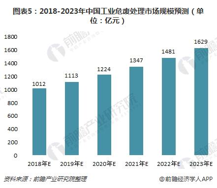隨著工業(yè)危險廢物的增加,國家會增加危廢市場投資,同時,該行業(yè)的企業(yè)規(guī)模會逐漸變大,兼并收購增加。預計到2023年,工業(yè)危廢處理市場規(guī)模將達到1629億元左右,2018年至2023年復合增長率為10%。