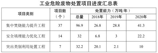 其中重點(diǎn)工程,圍繞提升危險(xiǎn)廢物集中處置能力,重點(diǎn)實(shí)施集中焚燒能力提升工程、安全填埋能力優(yōu)化工程、突出類別利用處置工程等三大工程。組織各地建立健全重點(diǎn)工程項(xiàng)目庫(kù),并采取滾動(dòng)實(shí)施、動(dòng)態(tài)調(diào)整方式,形成竣工一批、實(shí)施一批、儲(chǔ)備一批的項(xiàng)目推進(jìn)機(jī)制。重點(diǎn)推動(dòng)實(shí)施工程項(xiàng)目58個(gè),預(yù)計(jì)投資98億元。其中,集中焚燒能力提升工程項(xiàng)目37個(gè),共可新增能力96.9萬(wàn)噸/年;安全填埋能力優(yōu)化工程項(xiàng)目14個(gè),共可新增能力32萬(wàn)噸/年;突出類別利用處置工程項(xiàng)目7個(gè),共可新增能力32.2萬(wàn)噸/年。