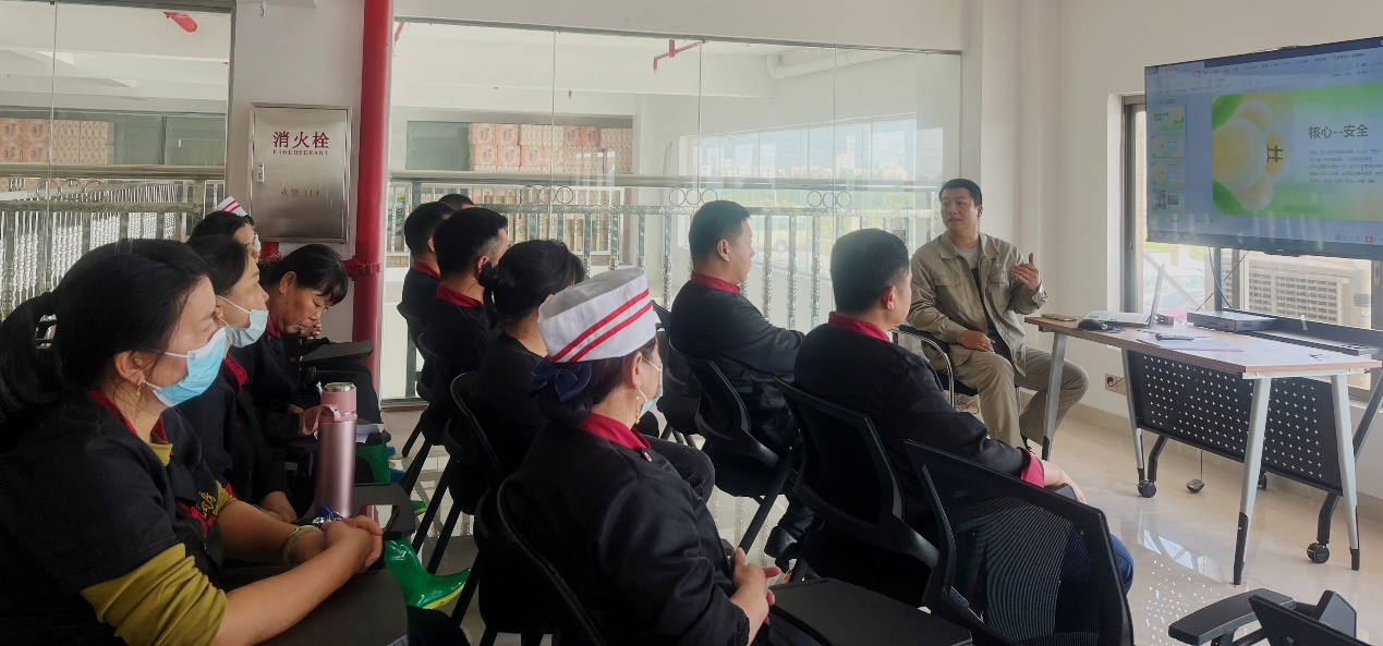 隨后,HSE管理部安全員朱宏杰于職工書屋對廚房工作人員進(jìn)行安全教育,從廚房危險源辨識、事故預(yù)防、設(shè)備操作等方面詳細(xì)地進(jìn)行講解,他強(qiáng)調(diào):“大家一定要重視電、火、器具的使用安全,注意安全是對自己負(fù)責(zé),也是對他人負(fù)責(zé)。在廚房無論進(jìn)行什么工作都需要嚴(yán)肅認(rèn)真,思想集中,比如在油鍋加熱過程中不可離開,在斬切食物時不得與他人交談,養(yǎng)成良好的習(xí)慣,確保自己和他人的安全。”